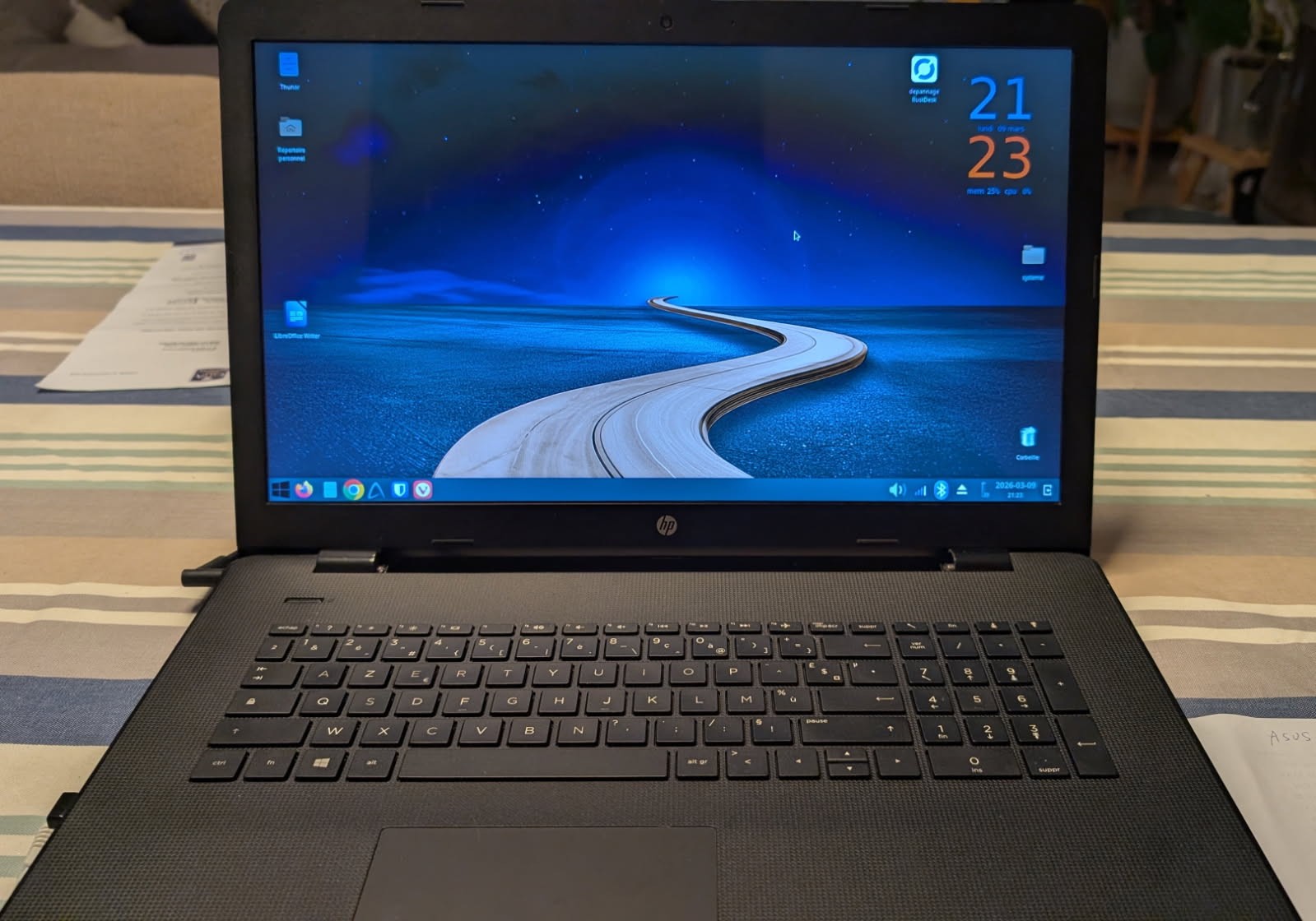 j'ai récupéré un vieux pc de mon entreprise (un pc Asus notebook U33J de 2011)en remplacant son disque dur par un ssd et en réinstallant un linux zorin OS il servira bien en dépannage.
